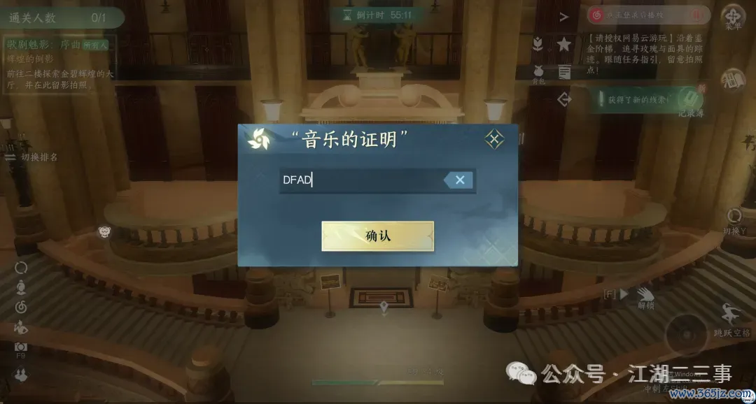对话面具后右边镜子插足克里斯汀房间,到镜子眼前输入密码“FCA”后退出即可